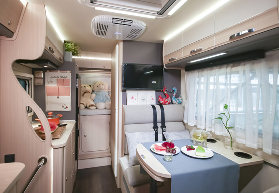 與自行式A型房車(chē)相比,自行式C型房車(chē)空間稍顯不足,但又比自行式B型房車(chē)空間寬敞、設(shè)備齊全--起居室、廚房、盥洗室、臥室具有大量櫥柜,攜帶大量行李絲毫不成問(wèn)題。同時(shí)車(chē)內(nèi)具有影音娛樂(lè)系統(tǒng)、空調(diào)、可轉(zhuǎn)化桌沙發(fā)椅等,總而言之,自行式C型房車(chē)是安裝在車(chē)輪上的空間緊湊、設(shè)備齊全的房車(chē)類(lèi)型。